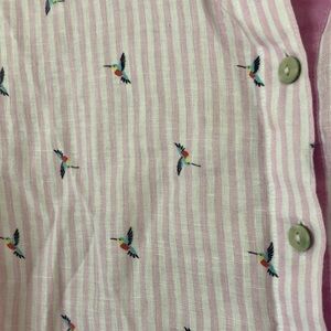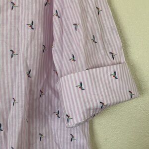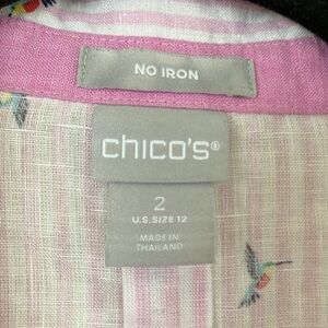 Chico's Novelty Hummingbird Print Linen Button Down Top, 12/L