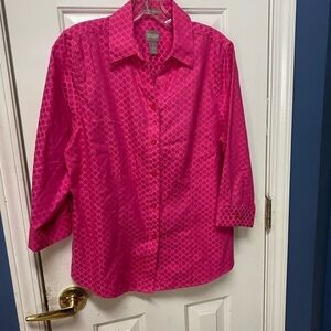 Chicos O S Wrinkle Resistant Button Up Collared Blouse Pink 3/4 Sleeve.