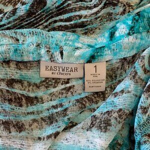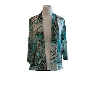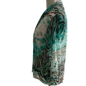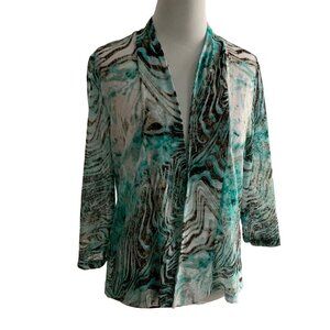 Chico's OPEN FRONT CARDIGAN M Brown, White, Turquoise POLYESTER, SPANDEX OFFICE