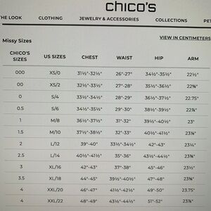 It is a Chico's size 2. Pit to pit 11.5". 2 open pockets & 2 with flaps in the front. Golden buttons on the epaulet, pockets, sleeves and down the front. The texture is crepe like. Split on both sides. Originally, the sleeves were slit from the shoulder to the cuff and I had it sewn closed part way. It is heavy and not for summer. Fabric content is not marked but it is washable.