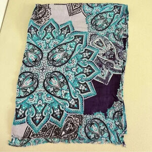 Chico's Oblong Scarf Mosaics Prints Purple/Blue Multicolor Lightweight 72" X 13"