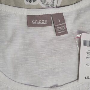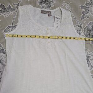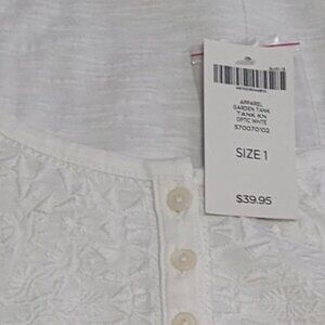 Chico's Off White Cotton Tank w/Embroidery & Button Detail Medium NWT