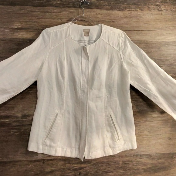 Chico's utility jacket in off-white. Zip front with two pockets. Perfect for layering.