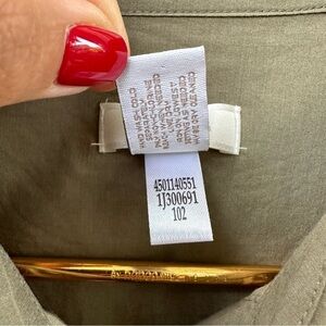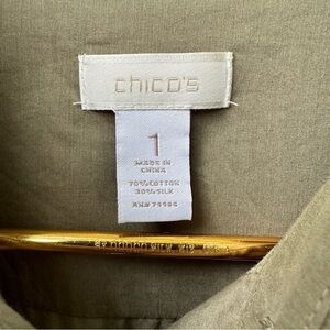 Chico’s Olive Army Green Cotton Silk Roll Tab Sleeve Button Up Shirt