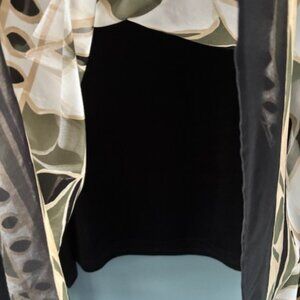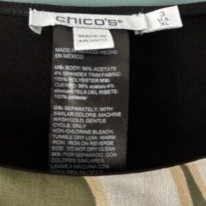 Chico's Olive Black White Tunic 3/XL Art Statement Floral Boho Luxe Whimsygoth