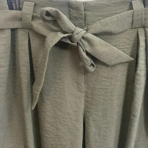These trendy cargo parts are a perfect staple piece. Olive green color. With zipper and button closure. Tie waist detail. Cargo pockets to both legs.