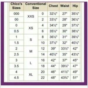 ***CHICOS USES VANITY SIZING, SIZES IN THE LISTING ARE BASED ON CONVENTIONAL SIZING***