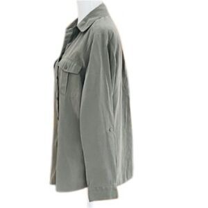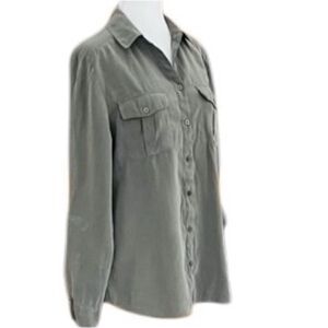 Chico’s Olive Button-Up Microfiber Shirt size 1, Medium/size 8