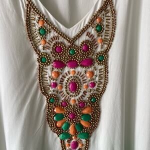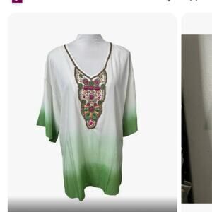Chicos Ombré Beaded Summer Tunic Blouse SZ 2 (12/14) Boho Casual Career Vacation