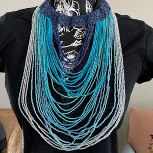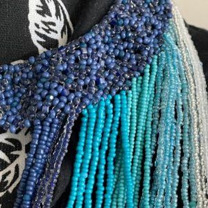 Chicos Vintage Multi Strand Collard Bib Seed Bead Varying Colors of Blue Statement Necklace