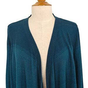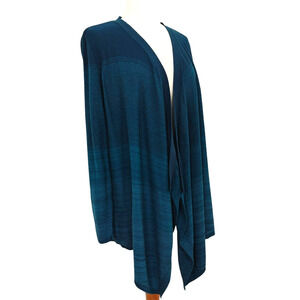 Chico's Ombre Drape Open Front Cardigan Sweater Large / 2 Teal Blue Cotton Blend