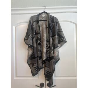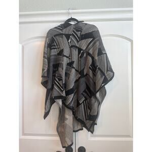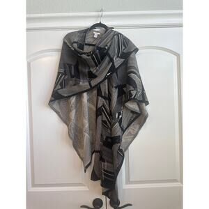 Chico’s One size Black and Metallic gold Mix Pattern Shawl Wrap Drape