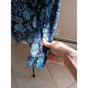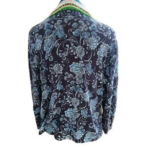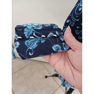 Chicos Open Cardigan Floral Size 2 US L Open Front Navy Blue