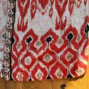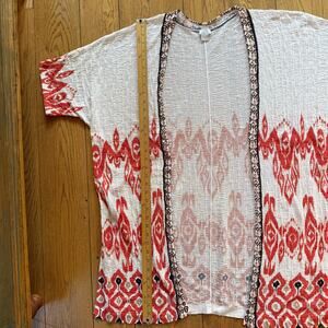 Chicos Open Cardigan Kimono SZ 2 SZ L Tribal Ikat Cotton Blend Short Sleeve