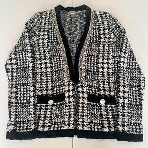 Chicos Open Front Blazer Cardigan Sz 0 US S Old Money Glam Classic Pearls