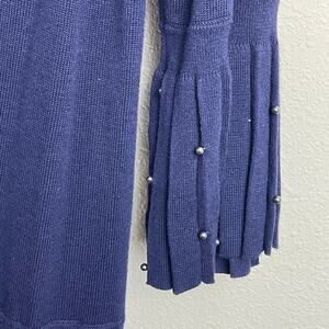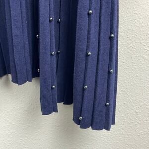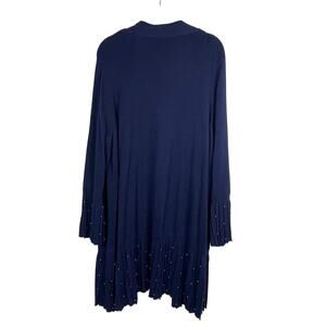 Chico's Open Front Blue Cardigan Duster Long Line Beaded Pleated Hem Detail Size 4 US XXL