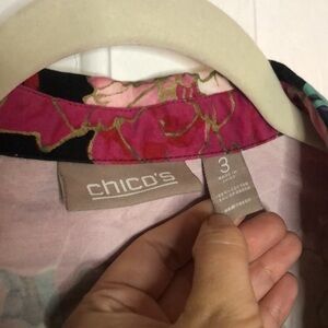 Chico's Open Front Collar Floral Print Jacket Size 3