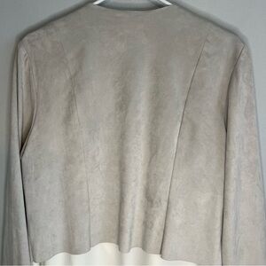Chico's Open Front Faux Suede Jacket Jacket Sz L White Gray Layered Office