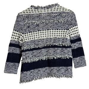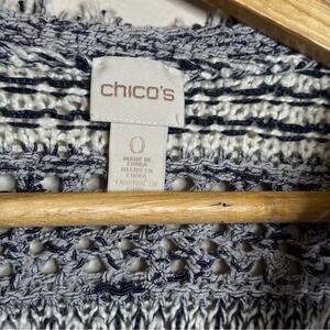 Chicos Open Front Fringe Knit Sweater Cardigan Navy White Size 0/S
