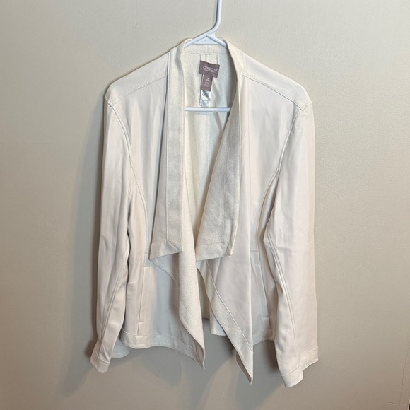 Chico's jacket with open front cascade design. Elegant and adaptable