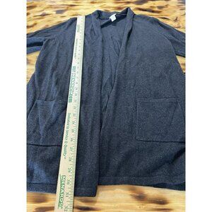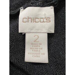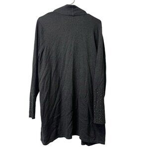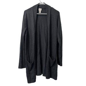 Chico’s Open Front Long Cardigan Sweater Gray Beaded Embellished Sleeve Size 2