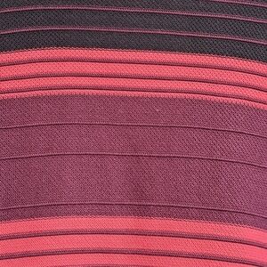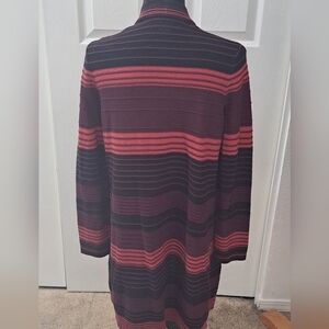 in excellent condition, dark purple, dark pink & black make up the stripes on this ribbed cardigan, pit to pit 19" long sleeves 22.5" length 34"