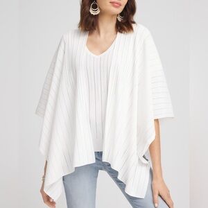 Chico’s Open Front Shawl White and Metallic Silver Women’s OS