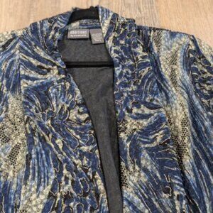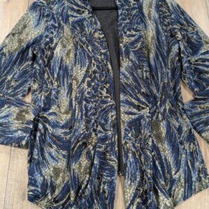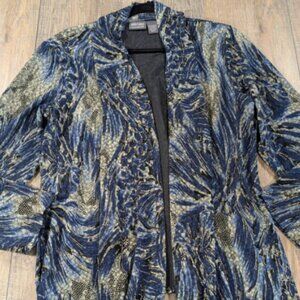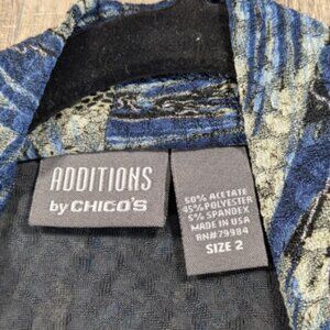 Chicos Open Front Top Womens Large Blue Print Waterfall Long Sleeve BOHO
