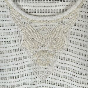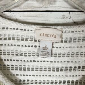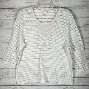 Chico’s Open Knit Cotton Nylon Beaded White Popover Sweater Top 3/ XL
