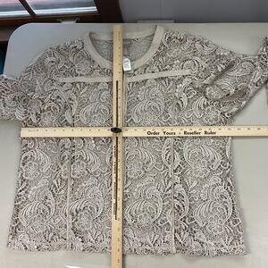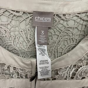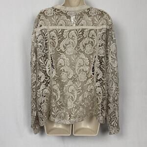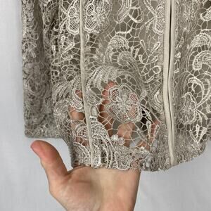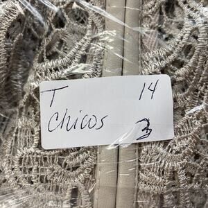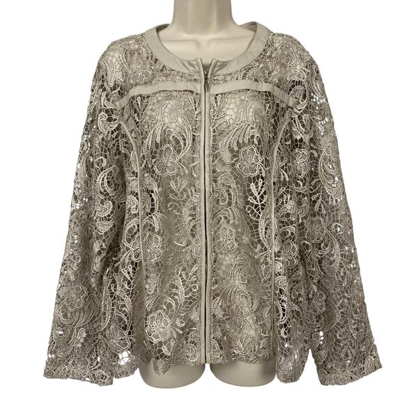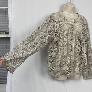 Chicos Open Lace Jacket Cardigan Size 3 Beige Tan Sheer Crochet Lace Dressy XL
