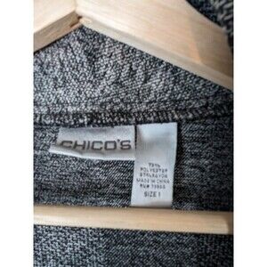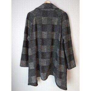 Chico's Open Plaid Gray Cardigan Sweater Check Sz 1 Draped Medium Contempory N51