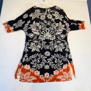 Chico's Open Style Cardigan Woman 0= Small Short Sleeve Black Orange Floral 33”