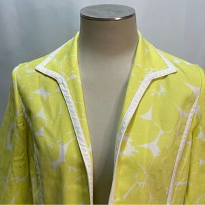 Chico's Optic Ceylon Yellow White Floral Open Front Jacket Blazer Size 1
