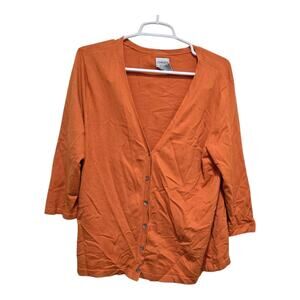 Chico’s Orange 3/4 Sleeve Button Front Cardigan XL