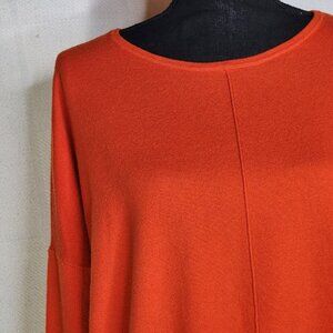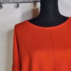 Chico's Pumpkin Orange Center Seam Pullover Ribbed Long Sleeves Nylon Rayon Poly Cashmere Sweater Size Chico 2 US L 12....Cashmere and Super Soft and Super Fashionable....Wear this Dressy or Casual Either Way you May Never Want to take it off.....Like Brand New.....
