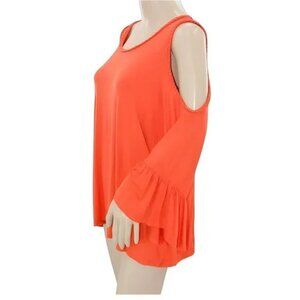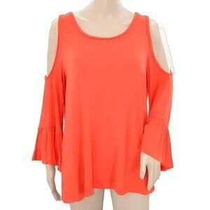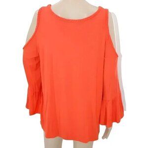 Chicos Orange Cold Shoulder Soft Flowy French Peasant Tunic Blouse Top L 2 US 12