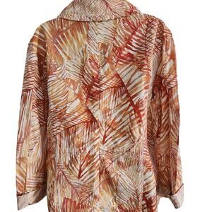 Chico's Orange Leaf Print Cotton Blend Size 2 (M) Long Sleeve Jacket