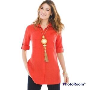 Orange No-Iron Linen Pocket quarter sleeves button down Chico’s top
