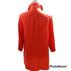 Chico's Orange No-Iron Linen Pocket quarter sleeves button down top
