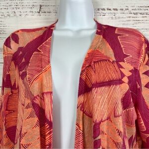 Chicos Orange Pink Floral 3/4 Sleeve Open Sweater