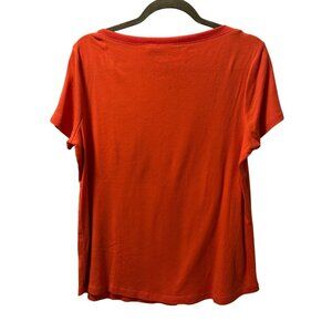 Chicos Orange Short-Sleeve Cotton Blend Top Size L Casual Lightweight Crew Neck