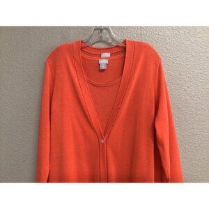Chicos Orange Sweater Twinset Shell & Long Cardigan Size 2 Large