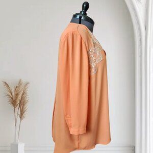 Chico's Orange V-Neck Blouse W/Embroidery Lace Accent Sz XXL/20