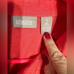 Chicos Orange/Pink Button Down Shirt Size 12 (Chicos Size 2)