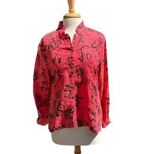 Chicos Oriental Print Short Jacket Top Blouse Womans Small