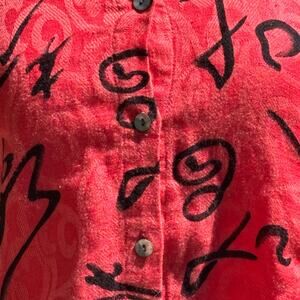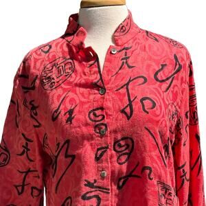 Chicos Oriental Print Short Jacket Top Blouse Womans 8/10 Linen Cotton Blend