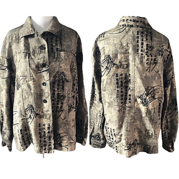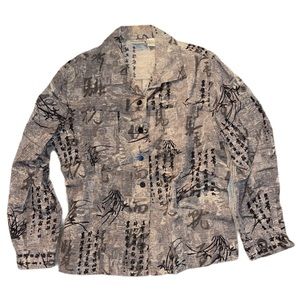 Chico’s Oriental Print Silk & Linen Pocket Shirt