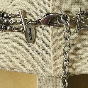 Chicos Oyster Abalone Multi LayeredShell Beaded Crystal Necklace Silver Tone 24"