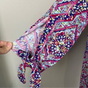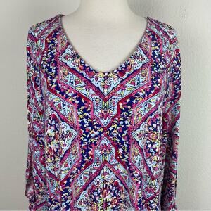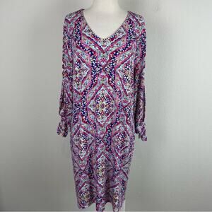 Chico's PInk Blue Multi Color Geometric Floral Stretch Knit Shift Dress 2
