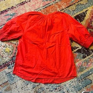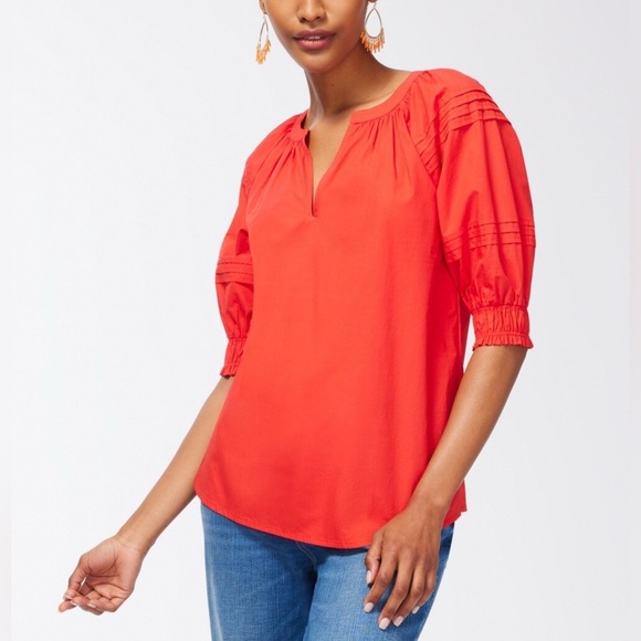Chico’s POPLIN SHIRT SOLID PUFF SLEEVE TOP 3/4 Slv Fashion Top FLAME SCARLET